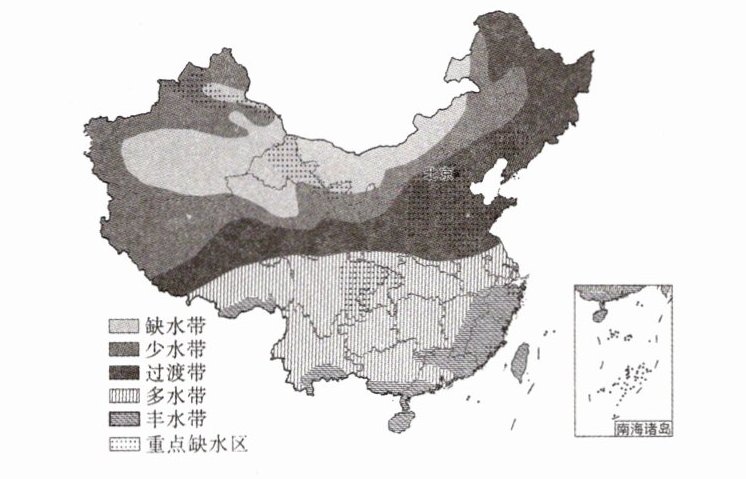 (1)我国省级行政区中,大部分位于丰水带和缺水带的分别是______(单选)。
