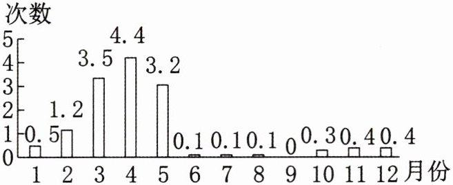 (2023.重庆)我国今年已发生多次大范围沙尘天气,风沙危害严重。读近22年我国沙尘天气平均次数统计图,完成8~10题。
