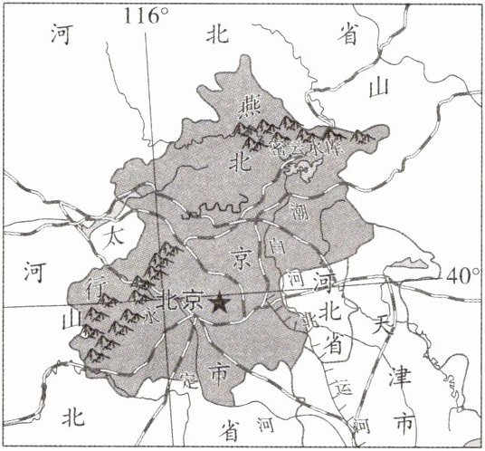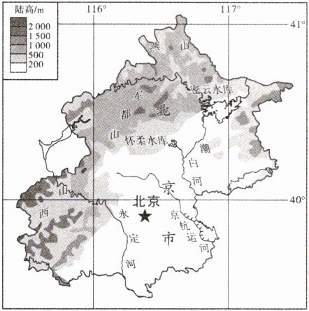 北京是我国著名的古都和历史文化名城,拥有3000多年的建城史和800多年的建都史。读图,完成1~2题。