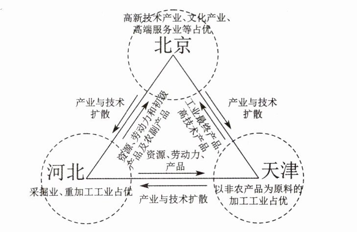 下图为京津冀城市一体化示意图。读图,完成9~10题。