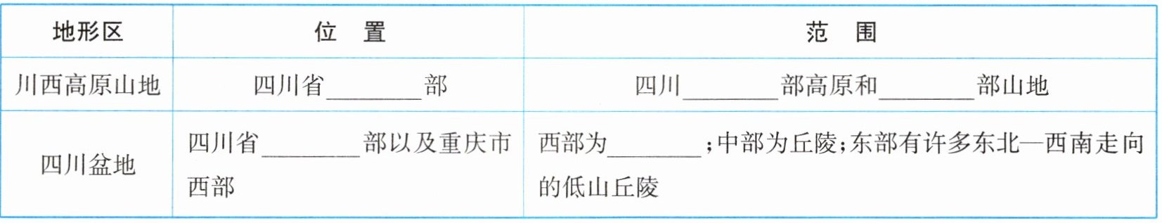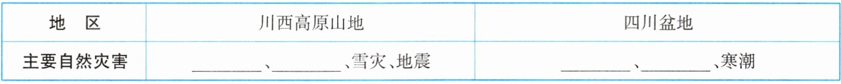 3. 东西气候差异:川西高原山地是典型的______气候区,大部分地区长冬无夏,春秋相连,降水量少而集中。四川盆地属______气候区,冬暖夏热,降水丰沛,冬春多雾。