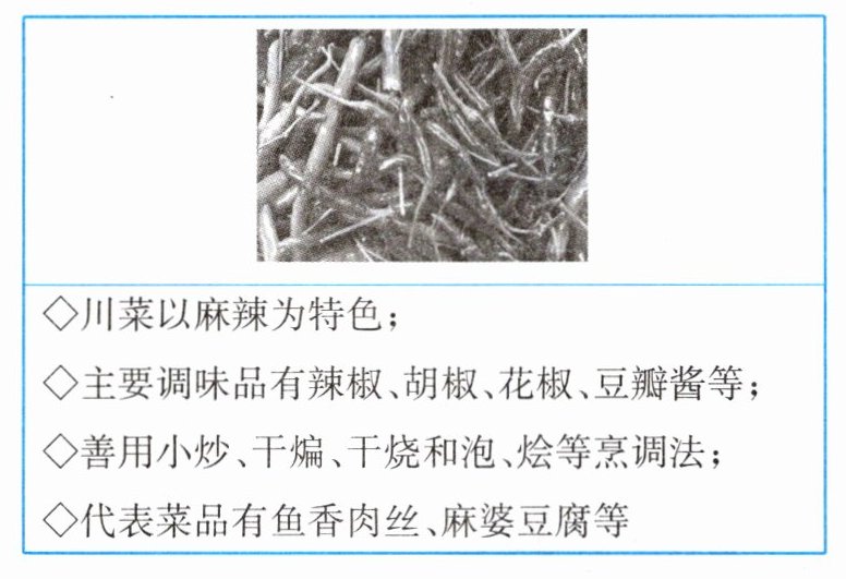 10. 某班同学通过互联网、电视、报纸杂志和书籍等,收集有关资料,开展主题为“自然环境对我国具有地方特色的饮食、民居的影响”的探究学习。全班同学分为饮食组和民居组两大组,搜集我国典型地区的资料,以报告的形式分享了学习成果。请你一起完成学习任务,回答问题。