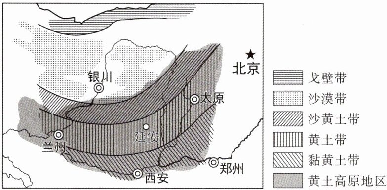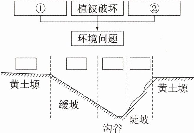 3.据图分析造成黄土高原水土流失的原因。图中①②两个自然原因是 ( )