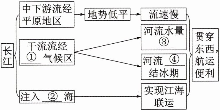 (1)受地形影响,长江下游具有水流平缓的水文特征,航运价值高,被称为“______”。