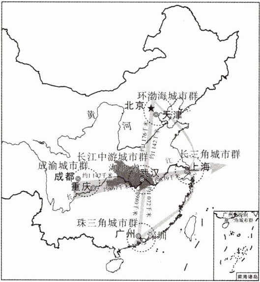 1. 武汉在弓箭型经济发展空间格局中的地位极其重要,主要体现在 ( )