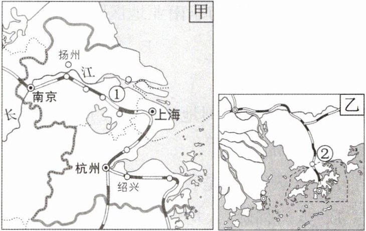 (1)两个三角洲发展的共同之处是自然条件优越,地形以______为主,气候为______气候,水陆交通便利,经济发达,城镇化水平高,①是______铁路,②是经济特区______。
