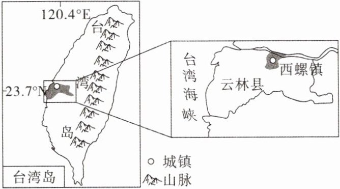 与黄豆酱油相比,黑豆酱油一般不添加小麦,酿造时间长(酿晒长达6个月)、工艺复杂。台湾西螺镇(下图)日照充足,极其适合黑豆的生长。西螺镇从各地挑选优质黑豆,加以古法技艺,成为全台湾优质的酱油产地。当地有多家百年酱油老店,但西螺镇经济发展缓慢。据此完成9~10题。