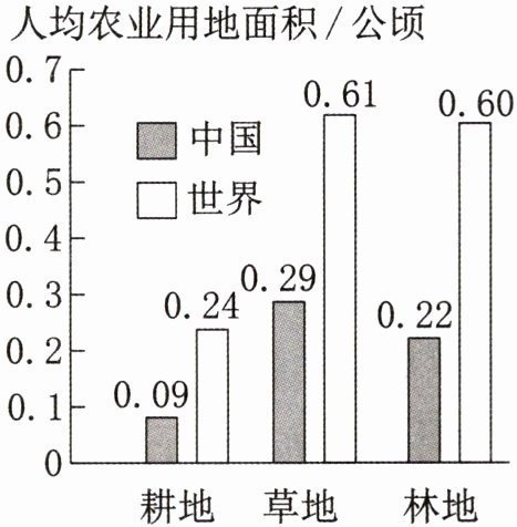 6. 我国人口众多,给资源、环境和社会经济发展带来沉重的压力。如图反映出的我国农业用地状况是( )