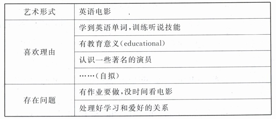 71.音乐、电影、绘画、摄影,在众多的艺术形式中,电影广受人们的喜爱。假如你最喜欢的艺术形式是英语电影,请根据以下提示写一篇短文。