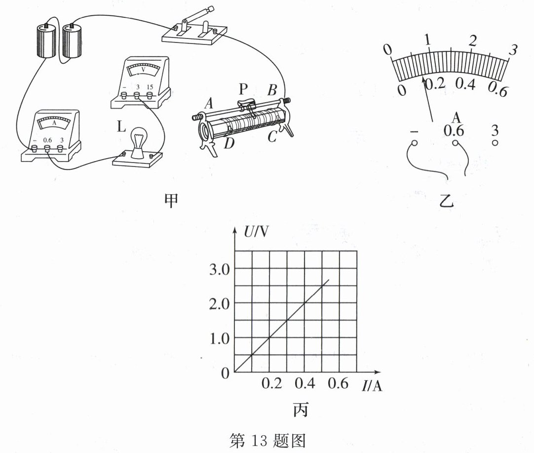 13. 学习了“伏安法”测定值电阻的阻值后,小华同学将定值电阻换成小灯泡,他想测量小灯泡工作时灯丝的电阻。