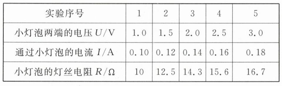 |小灯泡的灯丝电阻R/Ω|10|12.5| |15.6|16.7|