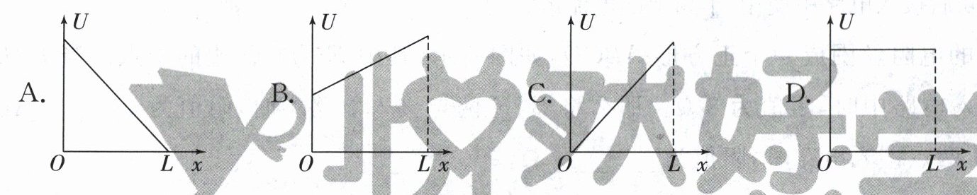 8. 在如图所示的电路中,R₀为定值电阻,ab是粗细均匀、长为L的一根电阻丝,滑片P与ab接触良好并可自由滑动,且$R_{ab}=R_{0}$,当闭合开关S后,电压表的示数U随滑片P离a点的距离x变化的规律能用下列哪个图象描述(电源两极间电压不变)( )