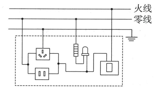 14. 如图所示为常用的插线板电路简化图,开关断开时指示灯不发光,插孔不提供工作电压;开关闭合时指示灯发光,插孔提供工作电压;若指示灯损坏,开关闭合时插孔也能提供工作电压,请在图中画出开关、指示灯、插孔的连接方式。