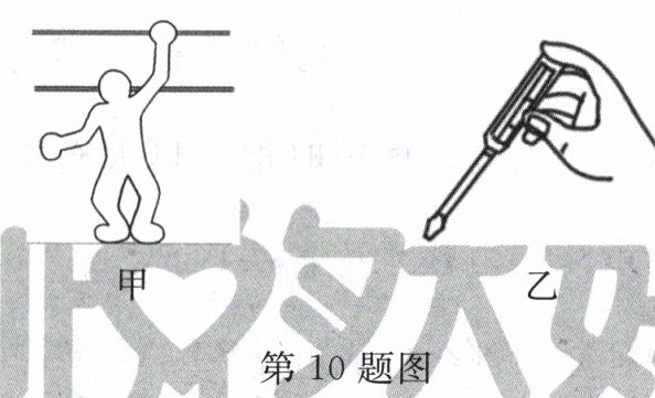 10. 人体就像一部复杂的机器,包含许多物理知识。如图甲,当站在地面上的人接触裸露的火线时,人会触电,说明人体是________(选填“导体”或“绝缘体”);如图乙,当我们正确使用测电笔时,当测电笔与火线接触,虽然有电流通过人体,但人却不会触电,此时加在人体两端的电压________(选填“大于”“小于”或“等于”)36V。