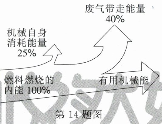 14. 如图所示是某内燃机工作时的能量流向图,该内燃机的热机效率是_______,热机给人类文明带来了进步,也给生态环境造成了污染,举出一种热机污染:_______。