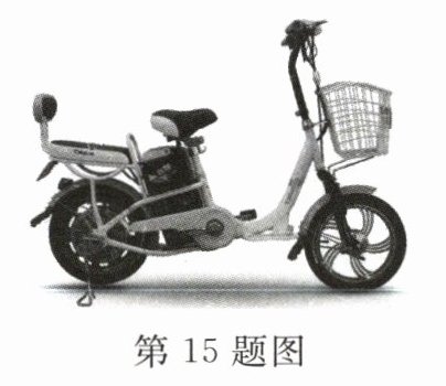 15. 如图所示为小伟妈妈新买的一辆电动车,行驶过程中由电池供电为车提供动力,将________能转化为________能,充电过程中电池相当于一个________(选填“电源”或“用电器”)。
