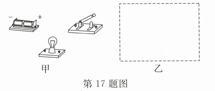 17. 用笔画线代替导线将图甲中的电源、灯泡、开关连接起来,使灯泡能发光,并在图乙虚线框内画出相应的电路图。