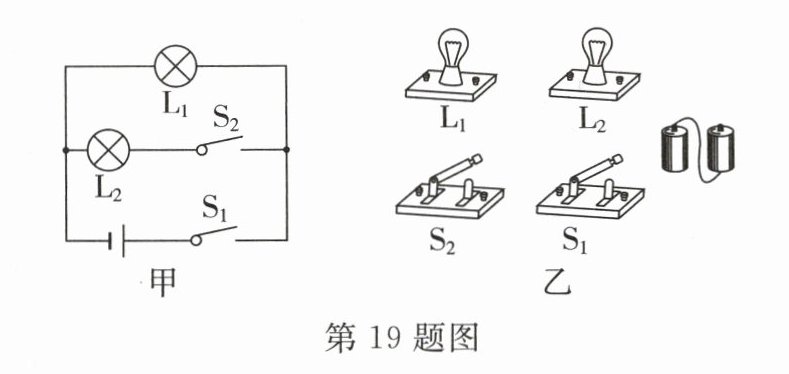 19. 按照图甲的电路图,把图乙的实物连成电路。(要求连接时导线不许交叉)