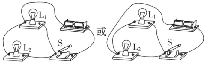 答:根据并联时用电器互不影响,串联时用电器互相影响可知:取掉一个灯泡,如果另一个灯亮,则这两盏灯是并联的;如果另一个灯不亮,则这两盏灯是串联的。(合理即可)
