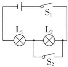 (3)有电源、两个开关(S₁和S₂)、两个小灯泡(L₁和L₂)、导线若干。请在如图丙虚线框中画出电路图,要求:S₁和S₂都闭合时,L₁亮,L₂不亮;S₁闭合、S₂断开时,两灯都亮。