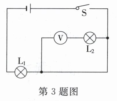 3. 如图所示,用电压表测量电压的电路中,闭合开关,可能观察到的现象是 ( )