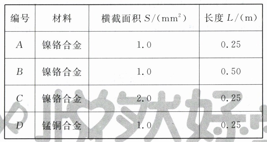 实验室提供了4根电阻丝,其规格、材料如下表所示: