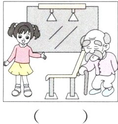 ( )2. A. Please sit here, grandma. B. Please take my seat, grandpa.