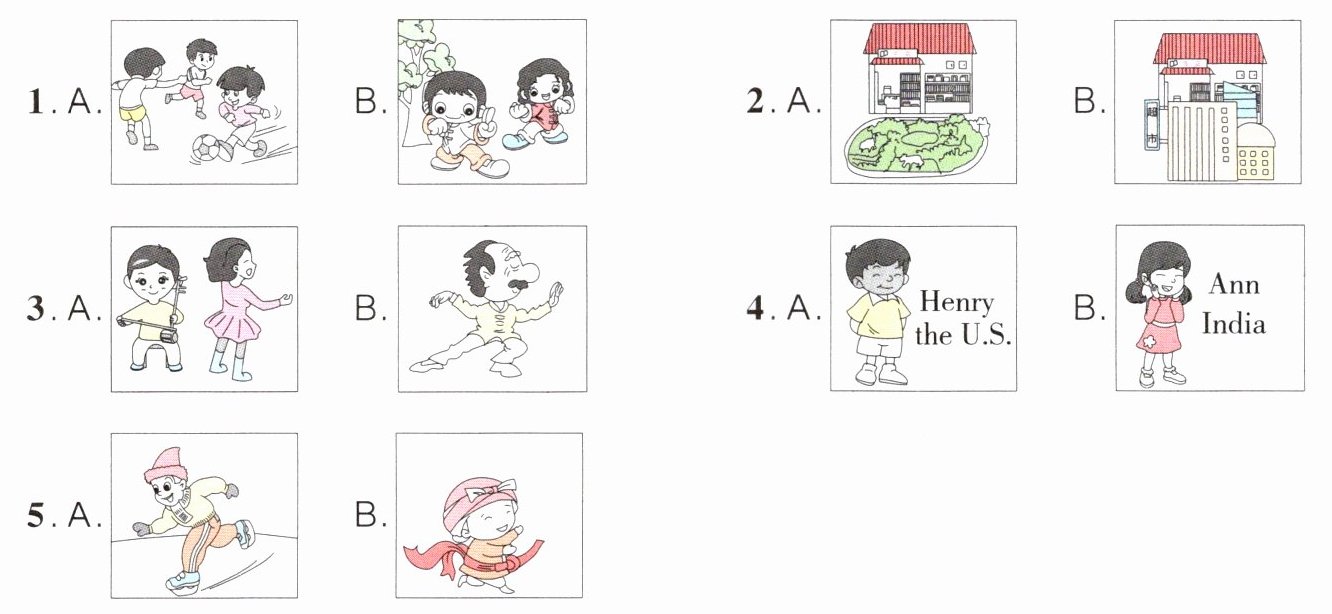 一、听录音,圈出与所听内容相符的图片,录音读两遍。