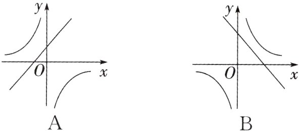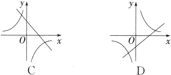 3.(2024.衡阳珠晖期末)在同一平面直角坐标系中,函数y = $\frac{k}{x}$和y = kx + 2的大致图象是( )