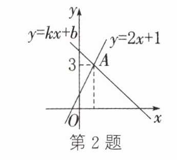 2. (2024·汉中镇巴一模)如图,一次函数y = 2x + 1与y = kx + b的图象相交于点A,则方程组$\begin{cases}y = 2x + 1\\y = kx + b\end{cases}$的解为( )