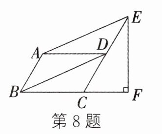 8. 如图,在▱ABCD中,AB = 1,连结BD,作AE//BD,交CD的延长线于点E,过点E作EF⊥BC,交BC的延长线于点F,且CF = 1,则EF的长为__________。