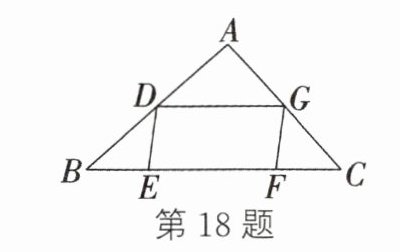 18.将△ABC与▱DEFG按如图所示的方式放置,点D、G分别在边AB、AC上,点E、F在边BC上.若BE = DE,CF = FG,则∠A的度数为________.