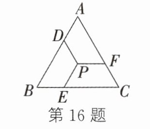 16.如图,等边三角形ABC的周长为12,P是等边三角形ABC内的任意一点,过点P分别作PD、PE、PF,且PD//AC,PE//AB,PF//BC,则PD + PE + PF的值为( )