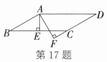 17.(2024·长春朝阳期中)如图,在▱ABCD中,过点A分别作AE⊥BC于点E,AF⊥DC的延长线于点F.若AE = 3,AF = 5,且▱ABCD的周长为32,则BC的长为________.