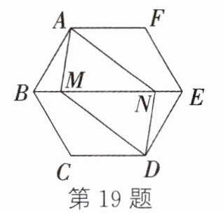 19.如图,在正六边形ABCDEF中,M、N是对角线BE上的两点,有下列条件:①BM = EN;②∠FAN = ∠CDM;③AM = DN;④∠AMB = ∠DNE.从中任选一个,能使四边形AMDN是平行四边形的为________(填序号).