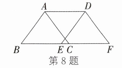 8. 如图,将△ABC沿着射线BC的方向平移得到△DEF,连结AD,只添加一个条件即可证明四边形ABED是菱形,这个条件可以是______________(写出一个即可).