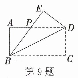 9. 如图,在矩形ABCD中,AB = 4,BC = 8,将矩形沿对角线BD折叠,BC的对应边BE与AD相交于点P,则PD的长为__________.