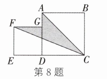 8. 如图,正方形ABCD的面积为36cm²,正方形DEFG的面积为16cm²,则涂色部分的面积为__________cm².