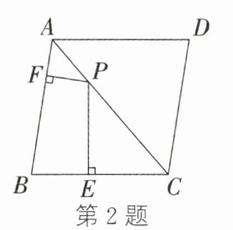 2. 如图,在菱形ABCD中,P是对角线AC上一动点,过点P作PE⊥BC于点E,PF⊥AB于点F.若菱形ABCD的周长为20,面积为24,则PE + PF的值为__________.