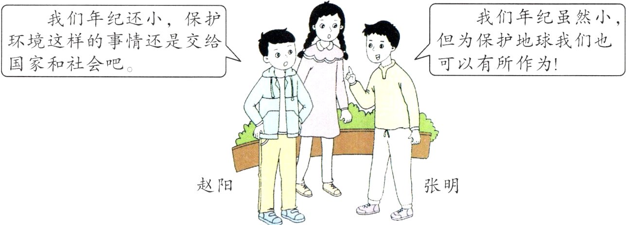 1.我赞同张明的观点。因为保护环境是每个人应尽的义务。小学生也能为保护地球做力所能及的事情。
