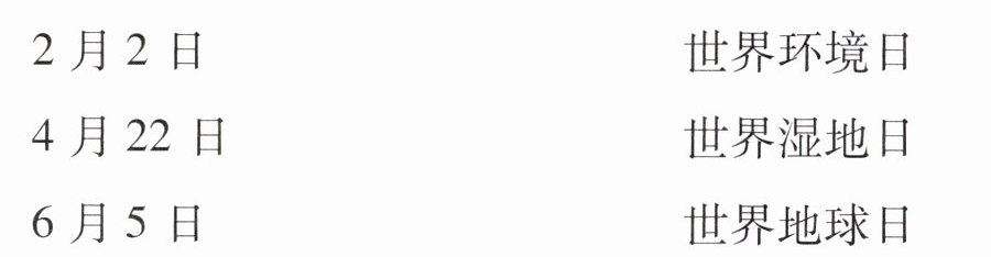 2月2日——世界湿地日 4月22日——世界地球日 6月5日——世界环境日