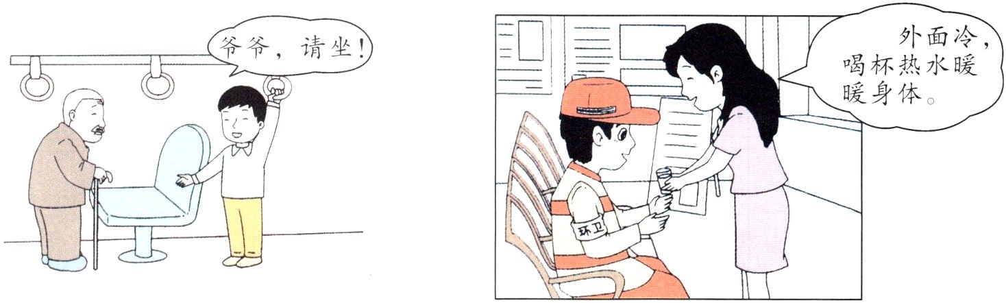 (漫画情境)请仔细观察图片,你发现了什么?说说你最尊重的人是谁,并写出理由。