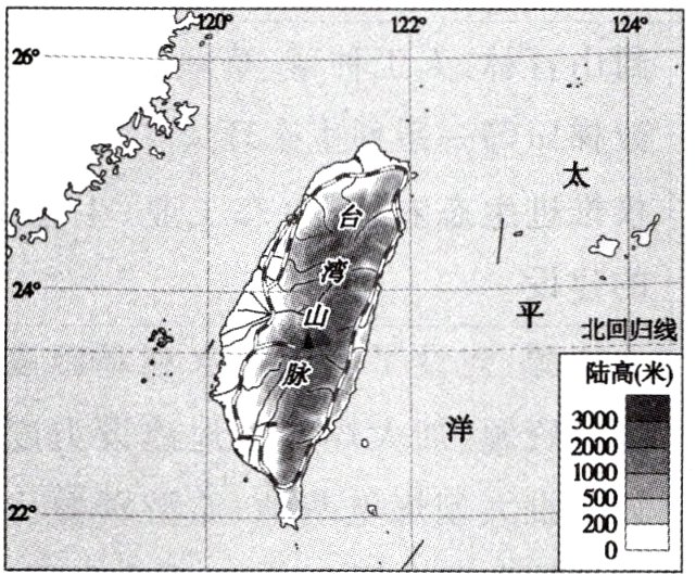 (聊城市中考)台湾是中国领土不可分割的一部分,其自然条件优越,物产丰富。读下图,完成4−5题。