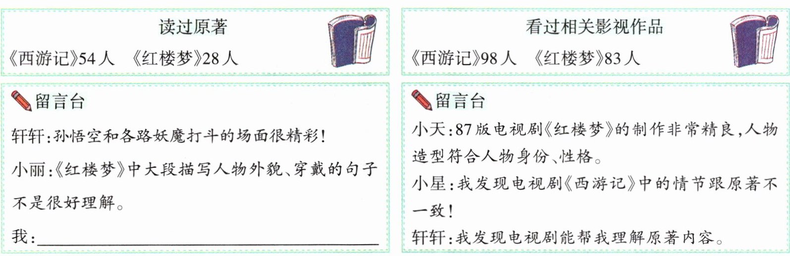 3.请你根据自己阅读原著的感受,在左边的留言台上写一条留言。