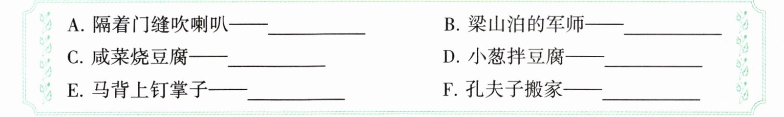 1.周末,我和妈妈下棋打赌,谁输了谁洗一个星期的碗。谁知连下几盘,我都输了。让爸爸在旁边指导,也一点用没有,真是“________”。我气得直跺脚,只好去洗碗了。我和表哥下棋,每次都是大败而归,爷爷总爱笑着调侃我:“你呀,真是‘________。