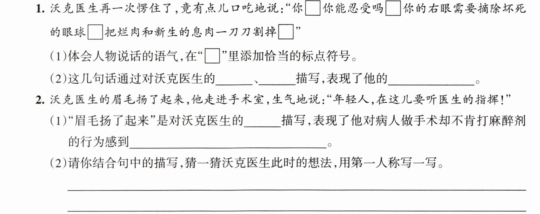 ①拒用麻醉剂 ②生气、惊讶 ③强忍剧痛 ④钦佩、敬仰