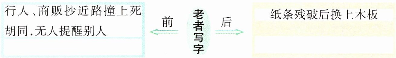 2. 狭窄拥塞,尘土蓬蓬,乱乱哄哄;静谧安宁,干净整洁。解析:本题考查对文章信息的筛选和提炼。老者出现前胡同的样子在文章第2自然段;老者出现后胡同的样子在文章第5、6自然段。根据文段内容提炼出关键词作答即可。