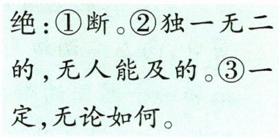 3.“绝”在字典中的解释见右图,“非遗传承人的绝活”中“绝”的意思是( )。“刷子李干完活,身上绝没有一个白点”中“绝”的意思是( )。