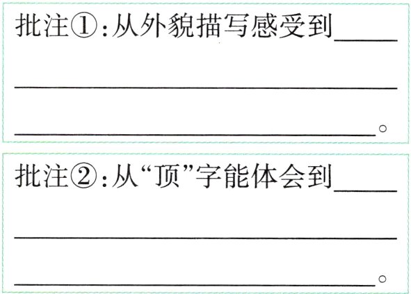 2.句子理解品析文中画线的①②两处,想想外貌、动作描写对刻画人物有什么作用,写在批注框里。