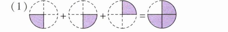 (1)$\frac{1}{4}+\frac{1}{4}+\frac{1}{4}=\frac{3}{4}$ $\frac{1}{4}\times3=\frac{3}{4}$